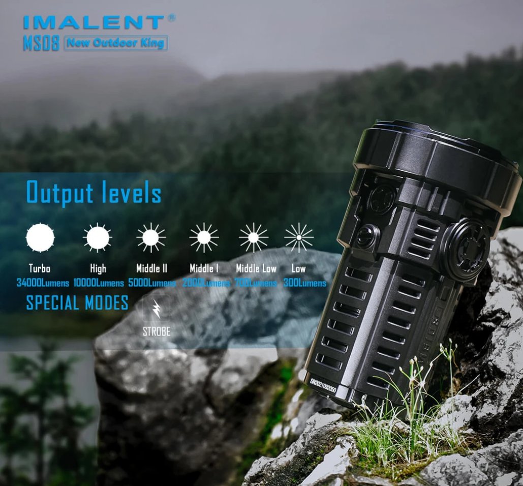 Nuova Imalent MS08 - 34000 lumens con 3 batterie 21700.