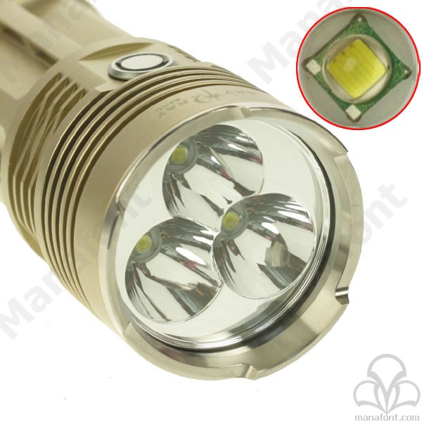 Su Manafont uscita SKY RAY KING CREE XM-L T6 3-LED 2000-Lumen 3-Mode Flashlight - Golden (4*18650)