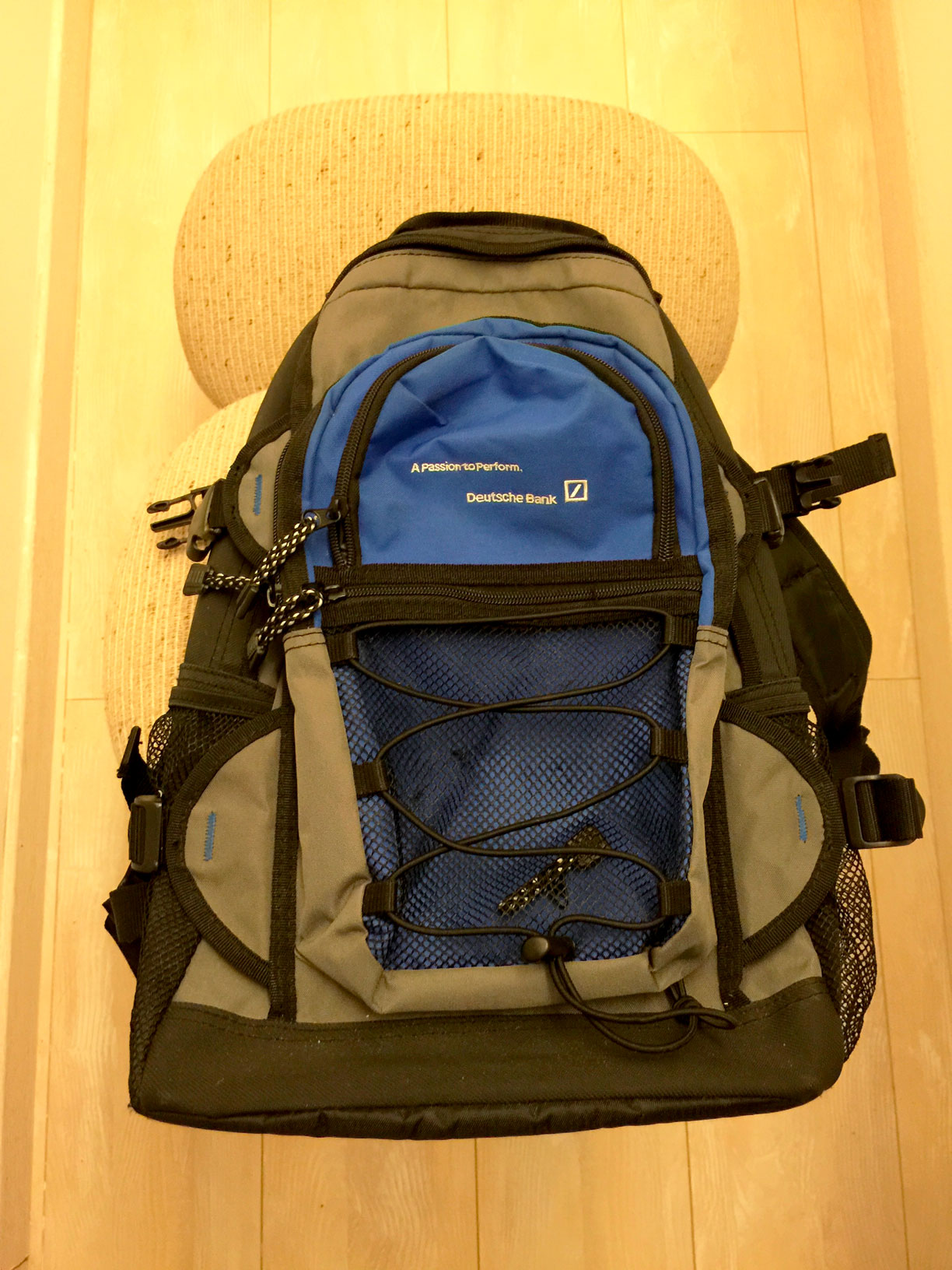 Come scelta dello zaino ho preferito rimanere in low cost riutilizzando una vecchia, ma ancora ben conservata, strenna natalizia oramai abbandonata in cantina.