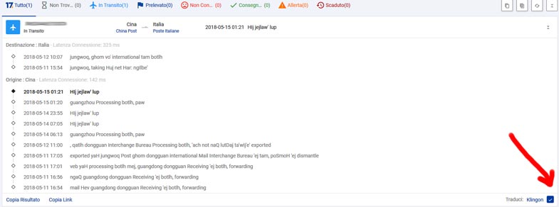 Per gli amanti di Star Trek, sul sito 17track.net è possibile tradurre i vari messaggi di stato di una spedizione anche in lingua Klingon.