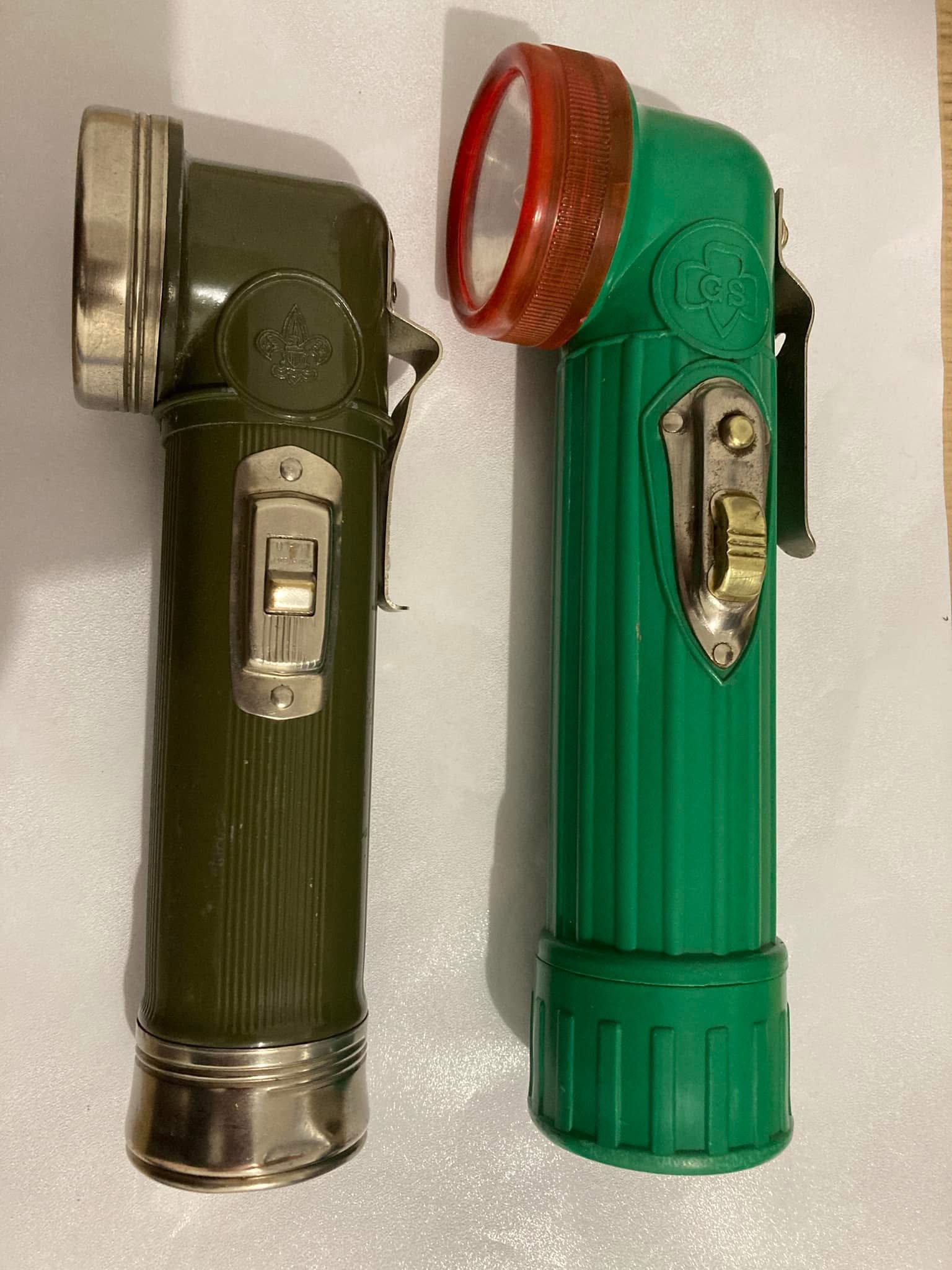 Due torce anni 60/70 anni dei Boy e Girl scouts americani, quella verde militare per ragazzi in metallo e quella verde acceso in plastica per ragazze, belli e caratteristici gli interruttori in metallo di entrambe e il bottom cap di quella per ragazzi, ovviamente sono perfettamente funzionanti.