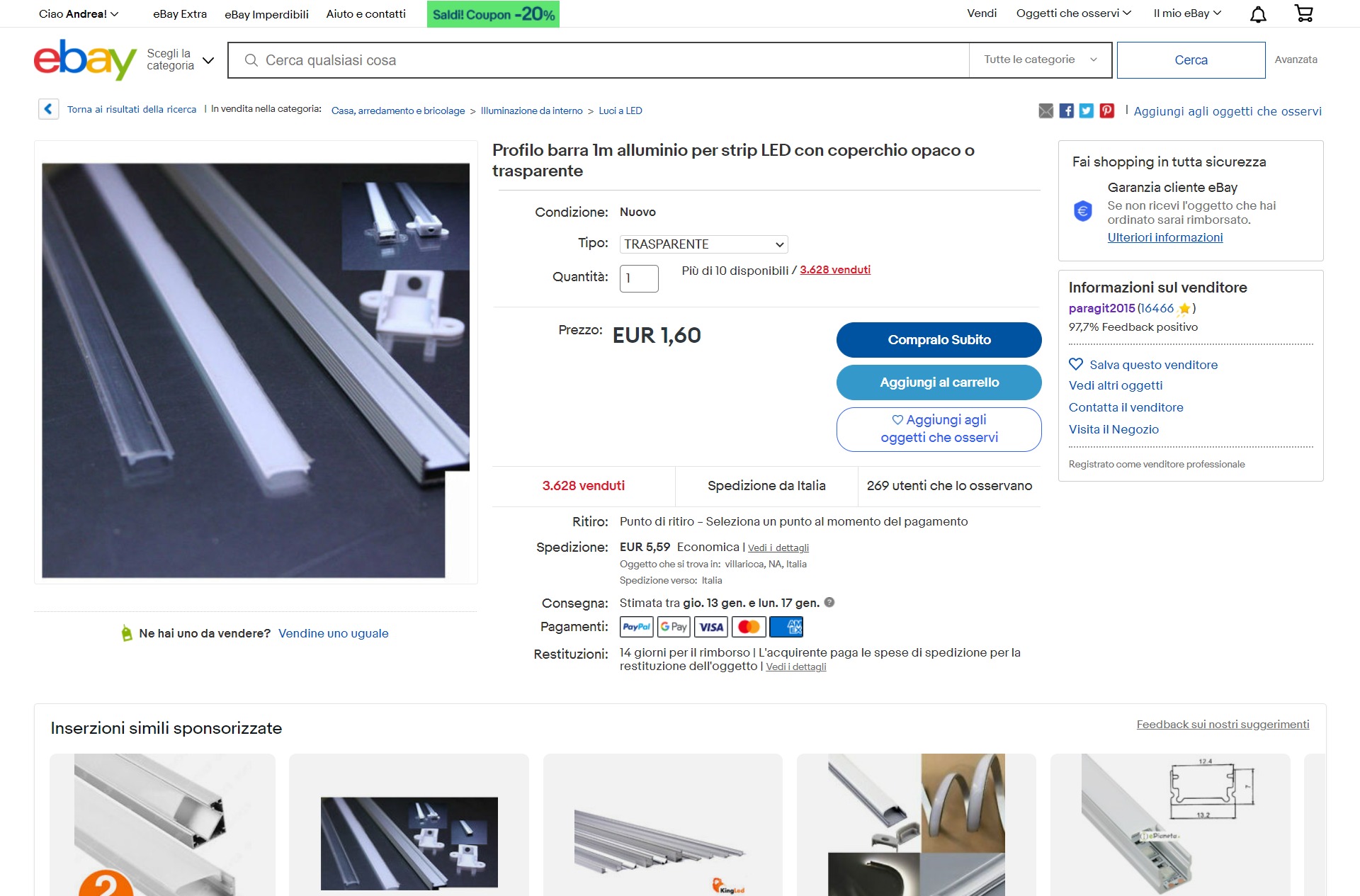 A) B) C) I profili saranno lunghi 1 m ciascuno nel caso sia utile saperlo. Verranno chiusi chiaramente ad entrambe le estremità.