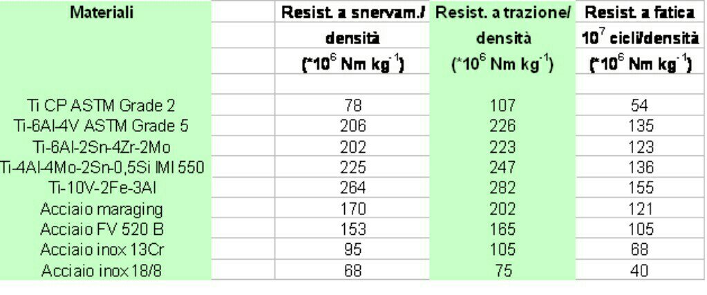 La prima come illustrato dalla tabella mostra come il titanio abbia valori simili all'acciaio nelle proprietà di sollecitazioni meccaniche.