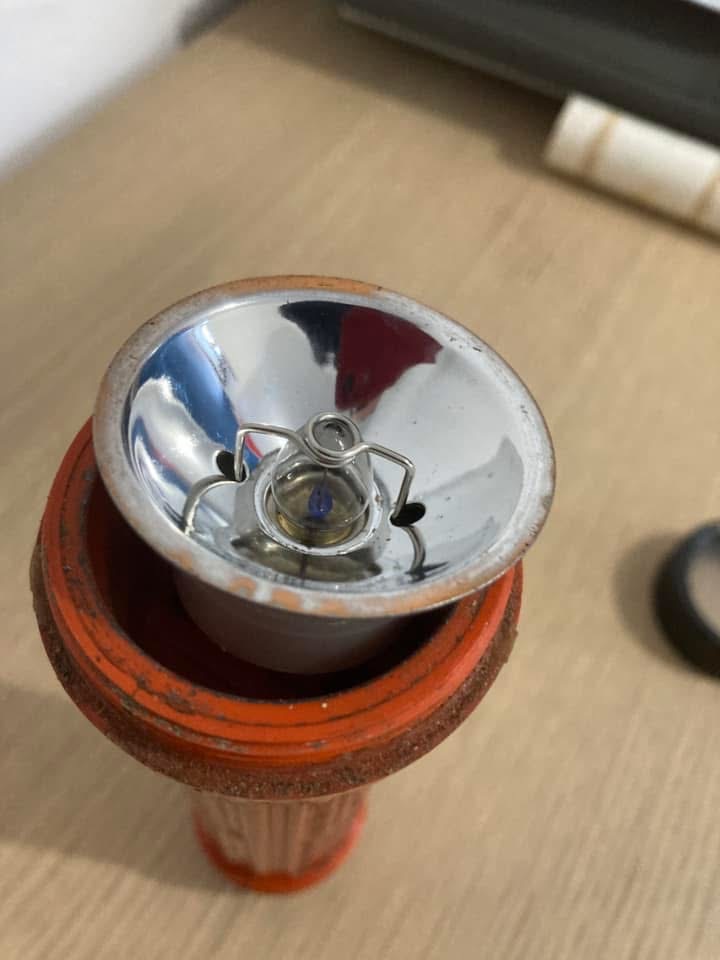 Questa no perché è stata modificata per la ricarica ma se tolgo bulbo e parabola smontata tutta la posso lavare nella lavastoviglie a bassa temperatura, per il rotolo non c’è alternativa valida e alla portata di tutti è più che altro serve a ridurre il tintinnio delle batterie che sbattono nella torcia specialmente se sono metalliche, comunque mantengo tutto rigorosamente originale o simile niente led che specialmente in questa non ha senso rendendo inutilizzabile il sistema antirottura del bulbo, e di colpi ne ha presi tanti.