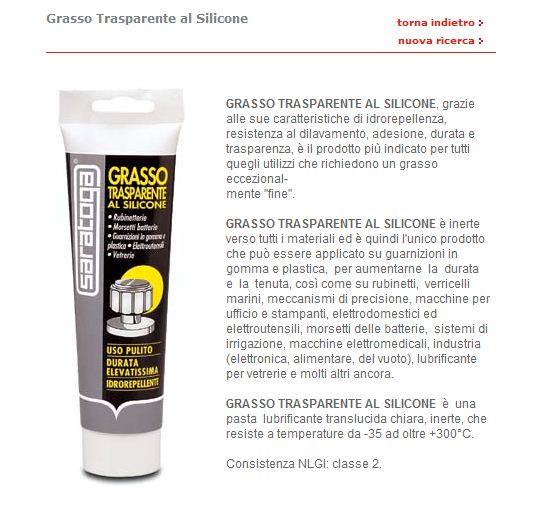 Io uso il "grasso trasparente al silicone" della CFG. Ho speso 10 euro per un tubetto da 125ml, insomma mi dura una vita