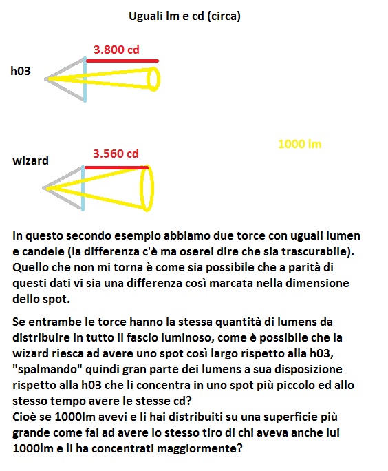 Se la wizard xhp50 avesse avuto "solo" 960 lumen avrebbe raggiunto un tiro pari a 2400 cd.