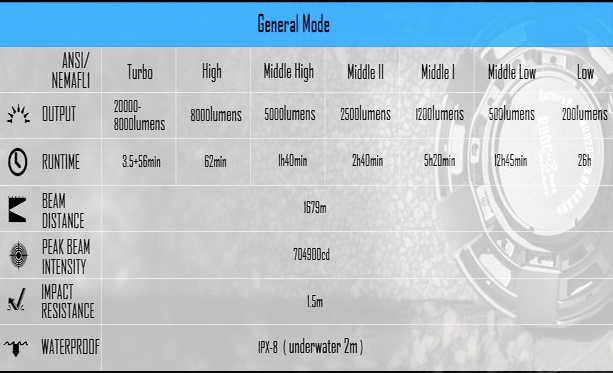 9 x CREE XHP35 HI LED • 704.900cd • 20.000Lm • Throw 1680m