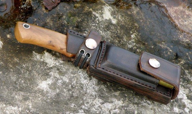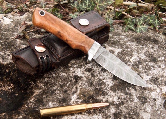 L'idea era di avere una lama per uno specifico uso venatorio, che poi ho fatto fare da Cenedese "lobo". Ho studiato anche un fodero esclusivo con un porta colpi da carabina o acciarino o fire steel e EZ raccorciato.