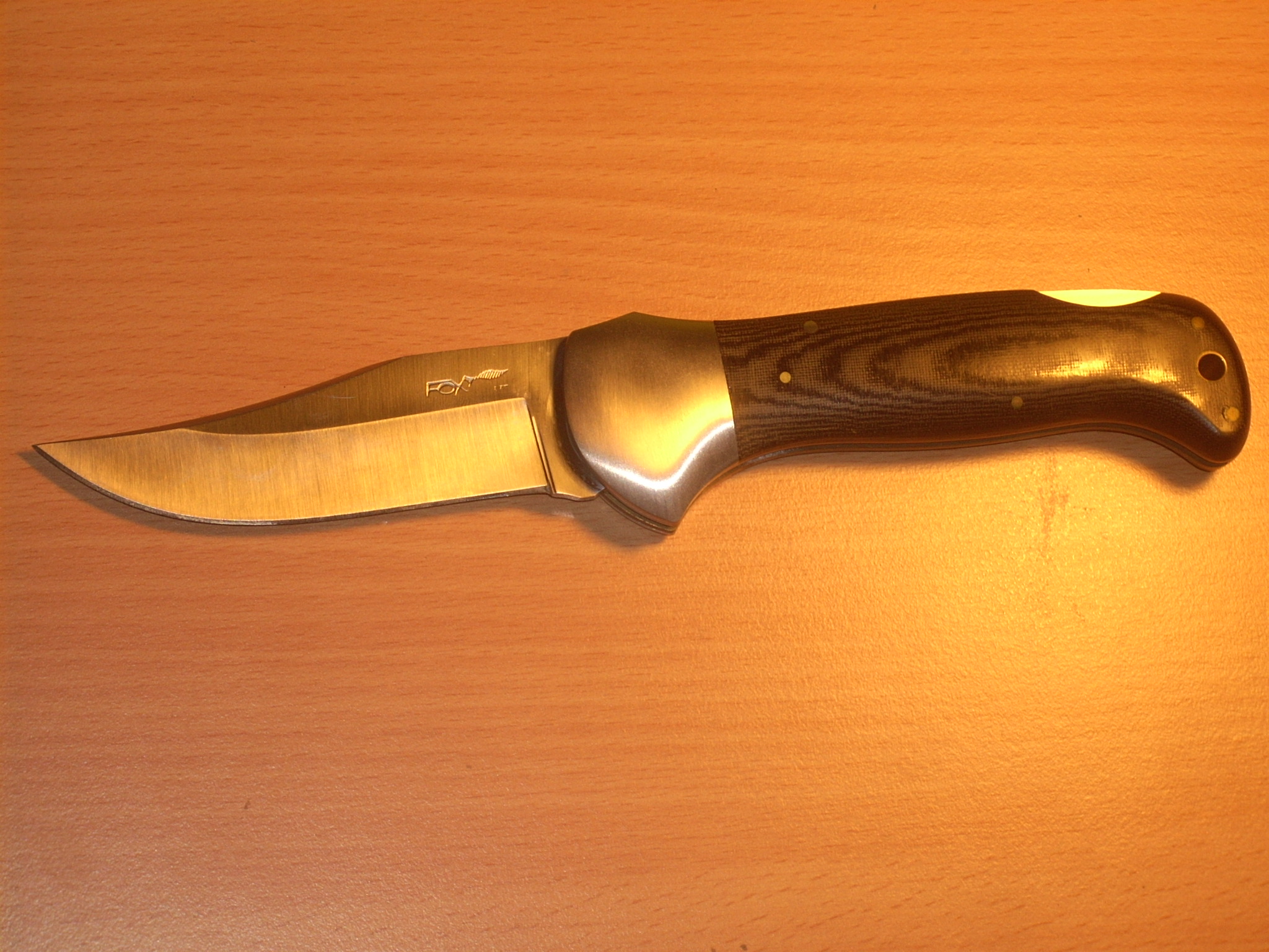 Si tratta di un coltello a serramanico che avrà una ventina di anni, marca Fox - Maniago. E' stato sempre nella sua custodia. Vedo che non ha segni di ossidazione, quindi probabilmente è inox. Che dite?