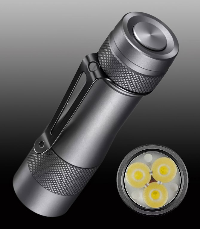 3 x XP-L HI 3D - Lente TIR - 2800Lm - NW - 223m - momentary light - lockout elettronico - interruttore elettronico d'acciaio in coda